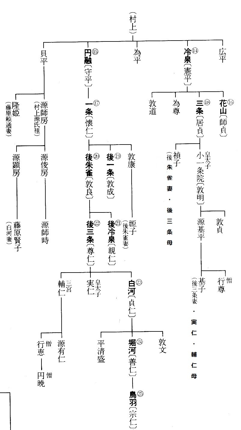 ●頼豪:1004−1084 天台宗の僧。藤原有家の子。園城寺の心譽権大僧正について出家。1037年(長暦1)入壇伝法。祈祷に効験をうたわれ、白河天皇の皇子誕生を祈り効があった。1074年(承保1)天皇の勧めで、恩賞に園城寺戒壇建立を請うが、延暦寺の強い反対にあって聴許されず、頼豪は寺に籠り怨嗟し、天皇の慰諭にも応ぜず、断食して果てた。せっかく誕生の皇子も病死し、世に頼豪が数千の鼠に化して延暦寺の聖教を食い尽くし、山徒が鼠祠をつくってこれをおさめたと言い伝えられている。 ●白河天皇:1053−1129 後三条天皇の第一皇子。母は藤原能信の娘茂子。名は貞仁親王。1072年(延久4)12月、父から譲位されて即位。この際父の意向で異母弟実仁親王が東宮となり、実仁親王にもしものことがあったときには同母弟の輔仁親王を立てるよう言われる(父は翌年薨去)。1075年(承保2)年12月中宮藤原賢子との間に第一皇子敦文親王が誕生するが、1077年(承保4)9月疱瘡にかかり死去。1079年(承歴3)7月には賢子との間に第二皇子善仁親王が誕生し、1085年(応徳2)実仁親王薨去に際しては父の遺言に反して、異母弟輔仁親王ではなく、実子の善仁親王を8歳にして、1086年(応徳3)11月26日に立太子と同時に譲位し(堀河天皇)、院政を行う。また堀河天皇が1107年(嘉承7)7月29歳で崩御すると、その第一皇子宗仁親王を5歳で即位させ(鳥羽天皇)、鳥羽天皇が、1123年(保安4)1月に第一皇子の顕仁親王に譲位(崇徳天皇)した後も院政を続け、1129年(大治4)7月に76歳で崩御するまで親政・院政合わせて57年もの間、治天の君として天下に君臨した。その間の1096年(永長元)年8月に出家。親政、院政期を通じて、1075年(承保2)、99年(康和1)、1107年(嘉承2)、27年(大治2)などに荘園整理令を発し、父の政治路線を引き継いだ。また、叙位、任官について独裁的な発言力をもち、受領を優遇した。院の武力として北面の武士を創設し、新興の源・平氏をこれにあてた。長い間絶対的な権力を握ったが、「天下三不如意」(賀茂川の水、双六の賽、山法師)の話が生まれるほど。うち続く天変地異や叡山と園城寺との争いなどに悩んだ。 ●良真大僧正:1022−1096 光孝天皇の末裔で讃岐守源是輔の子。比叡山の慶命、明快にまなび、長宴より灌頂をうける。1081年(永保元)天台座主。大僧正。1093年(寛治7)山門内部の争いで座主を辞し、京都にうつった。1096年(嘉保3)5月13日死去。75歳。号は円融房。